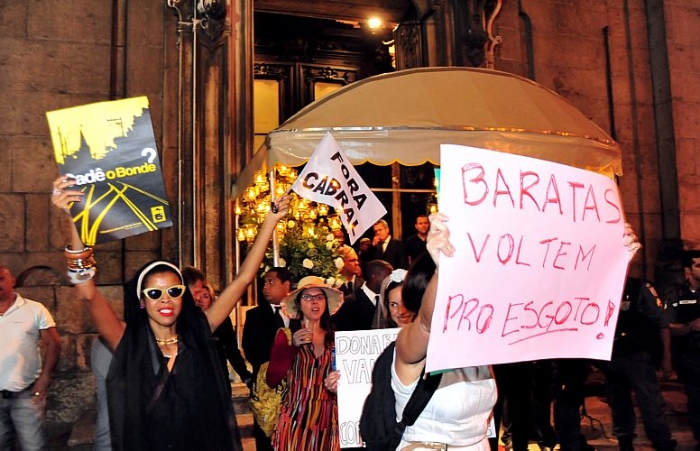 Estávamos numa madrugada de 14 de Julho, mesma data da Revolução Francesa, e toda aquela manifestação, que ontem começou alegre, até divertida, berrando bordões bem humorados, outros de gosto duvidoso, teve consequências desastrosas, com cabeça ensanguentada, decisões equivocadas, batalhão de choque, bombas de gás lacrimogênio, balas de borracha e gás de pimenta, às 3,30h, 4h da manhã, diante de nosso Palácio de Versailles, emblema máximo do luxo, da riqueza e da sofisticação do país: o Hotel Copacabana Palace!